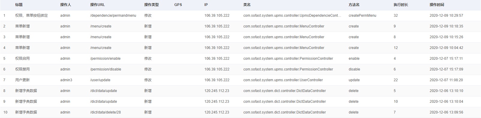 so-fast基于AOP提供基础的操作日志记录功能,并用过异步线程写入数据库,尽量规避对被织入请求的性能影响。日志记录可以在配置文件中配置日志记录种类,参见如下。日志记录内容主要从注解输入、请求信息以及token中获取。